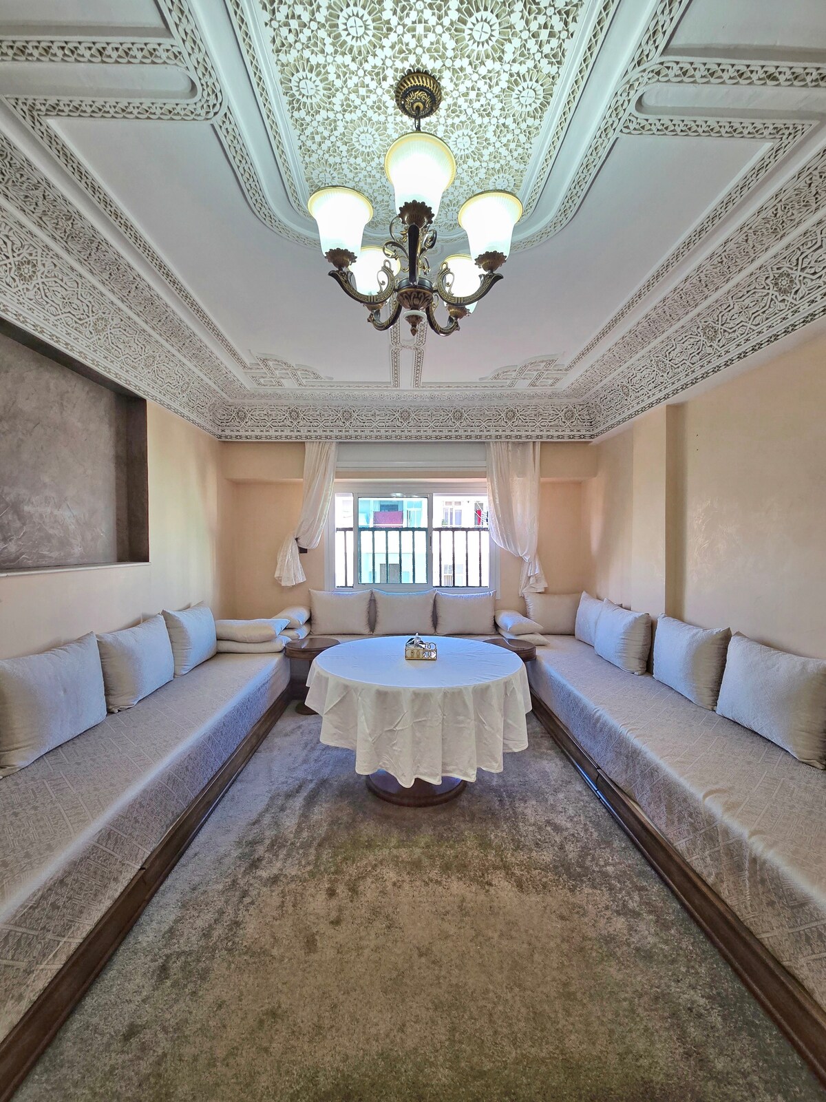 Moderno apartamento en el corazón de Rabat, en el barrio de Hassan, cerca de sitios históricos, tiendas y administraciones. Ofrece un dormitorio con TV conectada, una sala de estar con zona de oficina y TV, una acogedora zona marroquí para relajarse, una cocina equipada, una ducha y un baño. Ideal para estancias turísticas y profesionales. Conexión Wi-Fi rápida incluida.