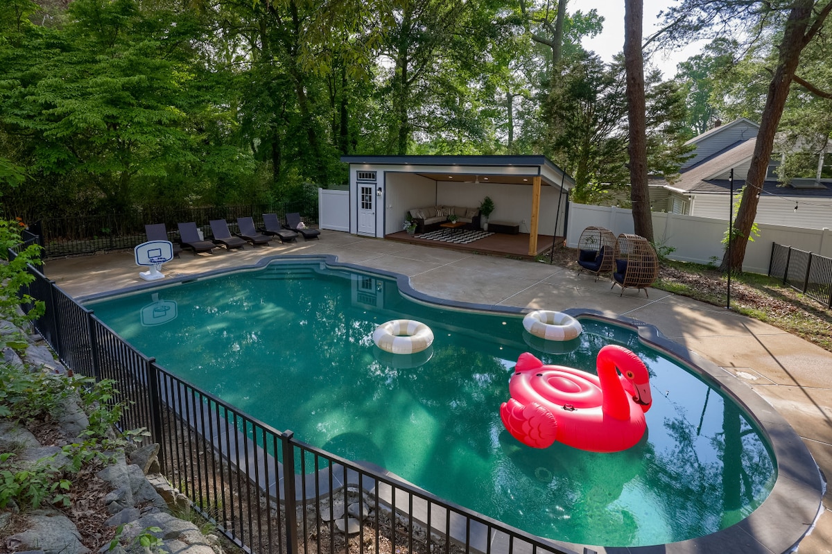 Increíble refugio privado de lujo en la bahía oriental de Chesapeake. Completo con todos los servicios: piscina de agua salada, chimenea, varios televisores inteligentes, capacidad para 10 personas en comodidad, colchones de espuma viscoelástica de primera calidad en todas las habitaciones, wifi rápido, muelle de 100 pies, enorme patio delantero. Vistas increíbles. Ampliamente renovado. No se tolerarán fiestas ni molestias. Requerimos que los huéspedes respeten a nuestros vecinos y a la comunidad serena en todo momento. Definitivamente no permitimos despedidas de soltero ni de soltera.
