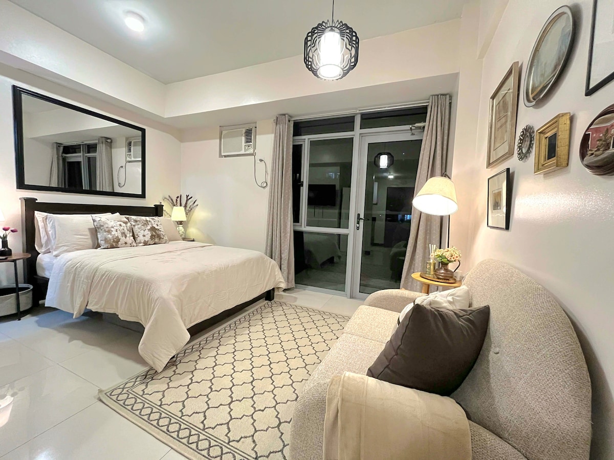 Experimenta la combinación perfecta de comodidad hogareña y lujo similar al de un hotel, donde tu relajación, disfrute y comodidad son nuestras principales prioridades. Originalmente diseñado como un apartamento de 2 dormitorios, hemos transformado esta unidad en una suite de 1 dormitorio con balcón, que ofrece una amplia sala de estar y comedor. Completo con electrodomésticos, opciones de entretenimiento y consolas de juegos, este apartamento totalmente amueblado en Quezon City está disponible para alquileres diarios, semanales o mensuales, ideal para tus próximas vacaciones.