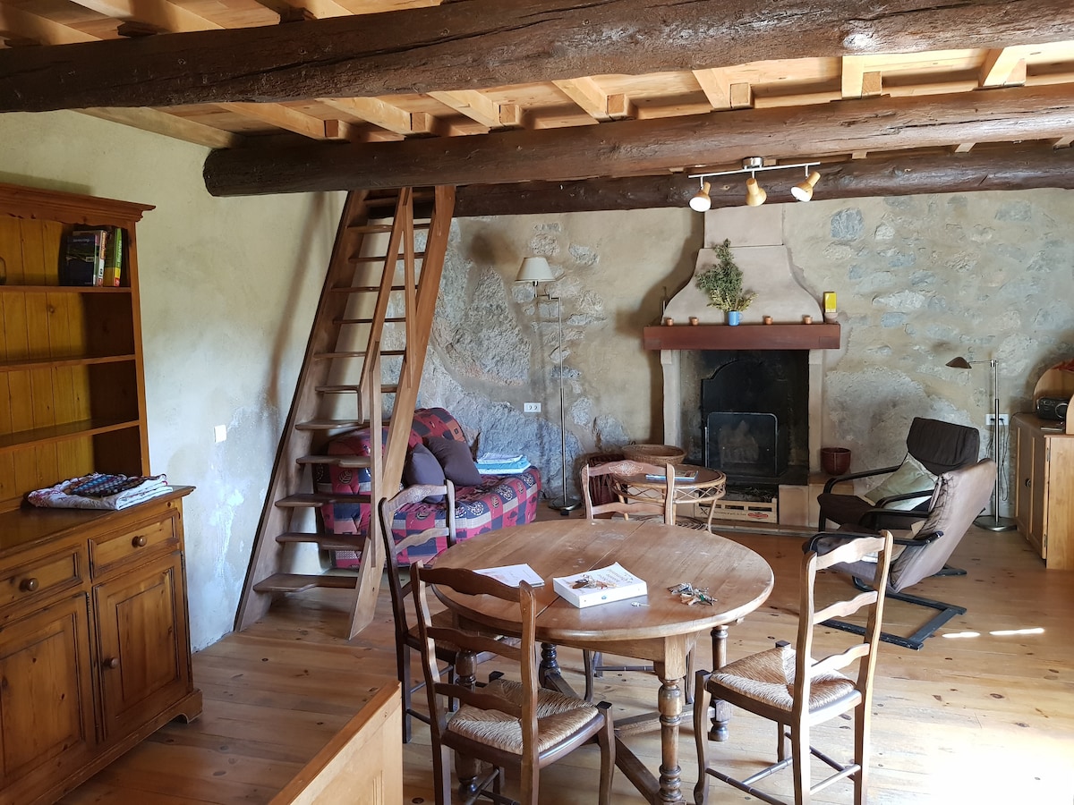 ¡Es por una pequeña carretera que sube a través de bosques forestales que se accede a este lugar "mágico" donde la vista de los Pirineos de Ariège es impresionante! Este antiguo redil situado a 750 m de altitud, está rodeado de praderas y valles . La piedra aparente en el exterior afirma el carácter tradicional del lugar. En el interior, la presencia de la madera, combinada con una decoración contemporánea, proporciona una sensación de hogar.