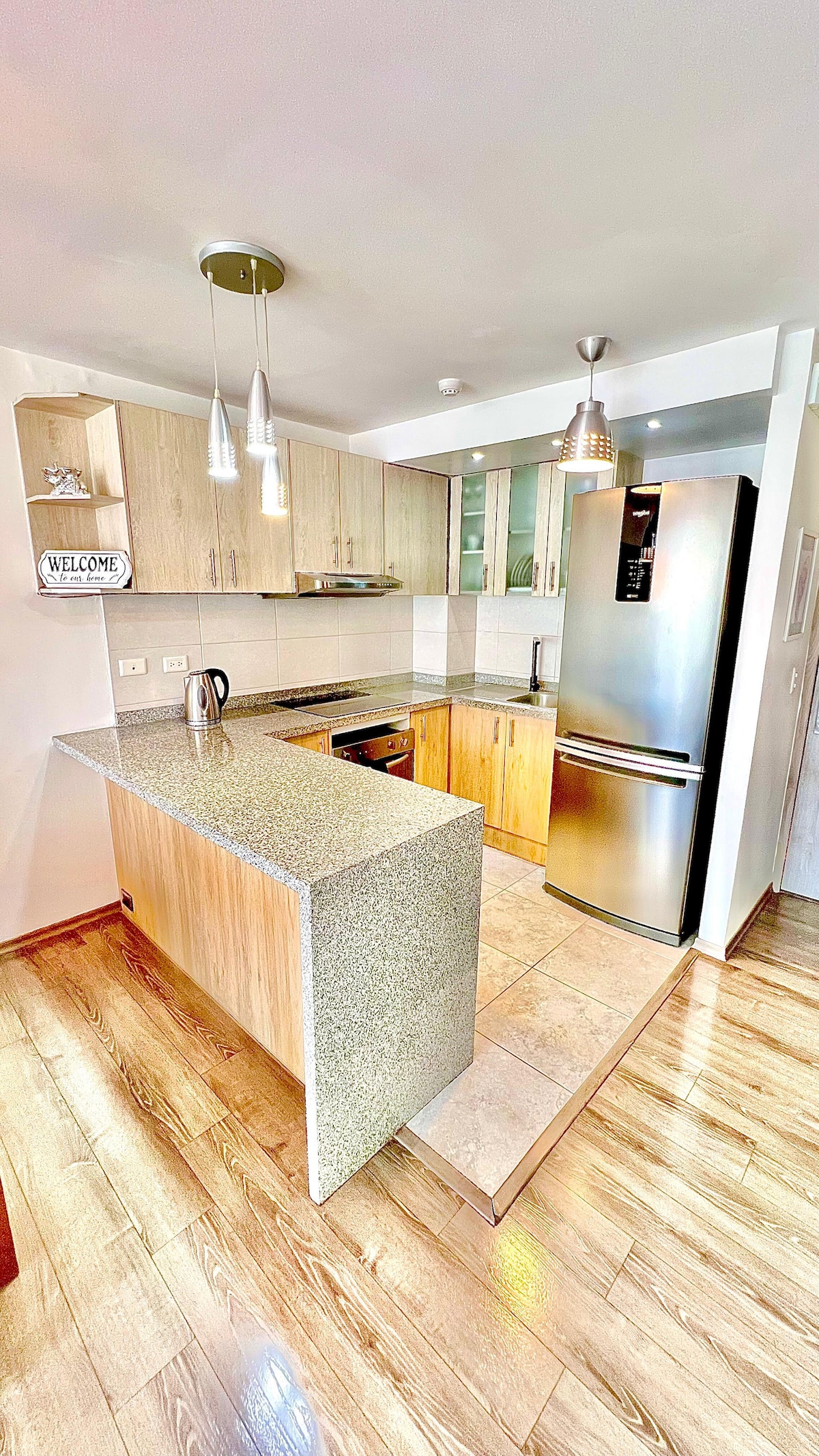 Este elegante alojamiento es ideal para viajes personales o en pareja. La suite ofrecemos un nuevo concepto de hospedaje para descanso, trabajo o diversión. Toda la suite está equipada con artículos nuevos y de lujo. Tiene 2 TV HD ANDROID . La cocina está equipada, con horno, microondas, cocina, refrigeradora, cocina, ollas, cafetera, vajilla y cubiertos completos. Tendrás una impresionante vista 360 desde la terraza, áreas para trabajo, descanso o recreación. La zona es exclusiva