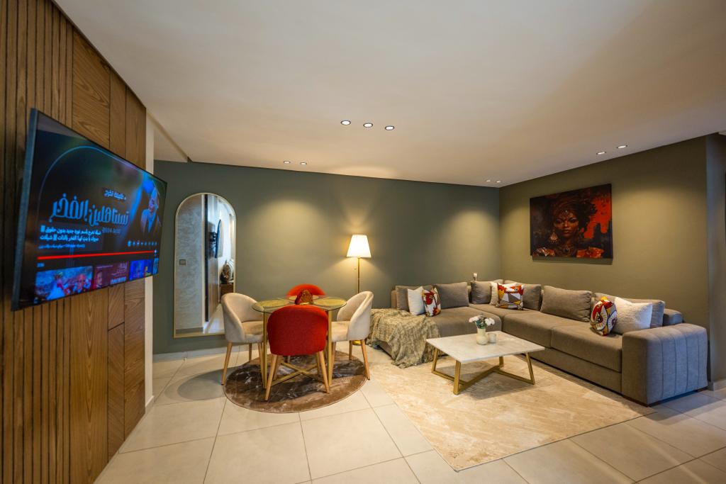 ¡Experimenta el lujo en el corazón de Rabat, la capital de Marruecos! Este espacio refinado cuenta con rincones acogedores, una cama cómoda, una cocina totalmente equipada y conexión WiFi gratuita. Cuenta con todo lo que necesitas para una estancia relajante. Este moderno departamento está ubicado en la elegante parte superior de Agdal, cerca del hotel Sofitel, la escuela Descartes y el bosque Ibn Sina. Convenientemente ubicado, el departamento está a pocos pasos de la calle principal, llena de tiendas, cafeterías y restaurantes. Está a solo 10 minutos en coche de la Medina.