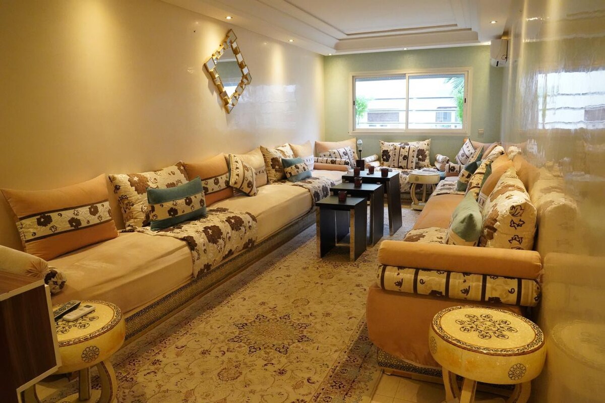 Un apartamento con encanto,Situado en la planta baja, conveniente para mi persona mayor. vistas al jardín, idealmente situado en una zona tranquila, a solo 15 minutos de la granja de ocio, la playa, los jardines exóticos, Magic Parc, la estación de tren y la torre Mohammed VI. Cerca del puerto deportivo y el aeropuerto de Salé. Con su gusto refinado, limpieza óptima y equipamiento completo, este lugar ofrece un entorno cómodo para su estancia, lo que le permite disfrutar de su tiempo de relajación.