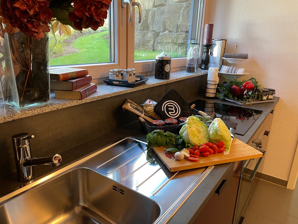 Aquí encontrarás un oasis de bienestar en el que PUEDES SER TÚ MISMO. En una zona tranquila, tienes espacio para respirar y puedes relajarte. ¡Disfruta del paisaje que te rodea y siéntete como en CASA! Con una entrada independiente a nuestro apartamento recién construido, puedes disfrutar de tu privacidad y estar solo. ¡Nuestro acogedor apartamento te espera!