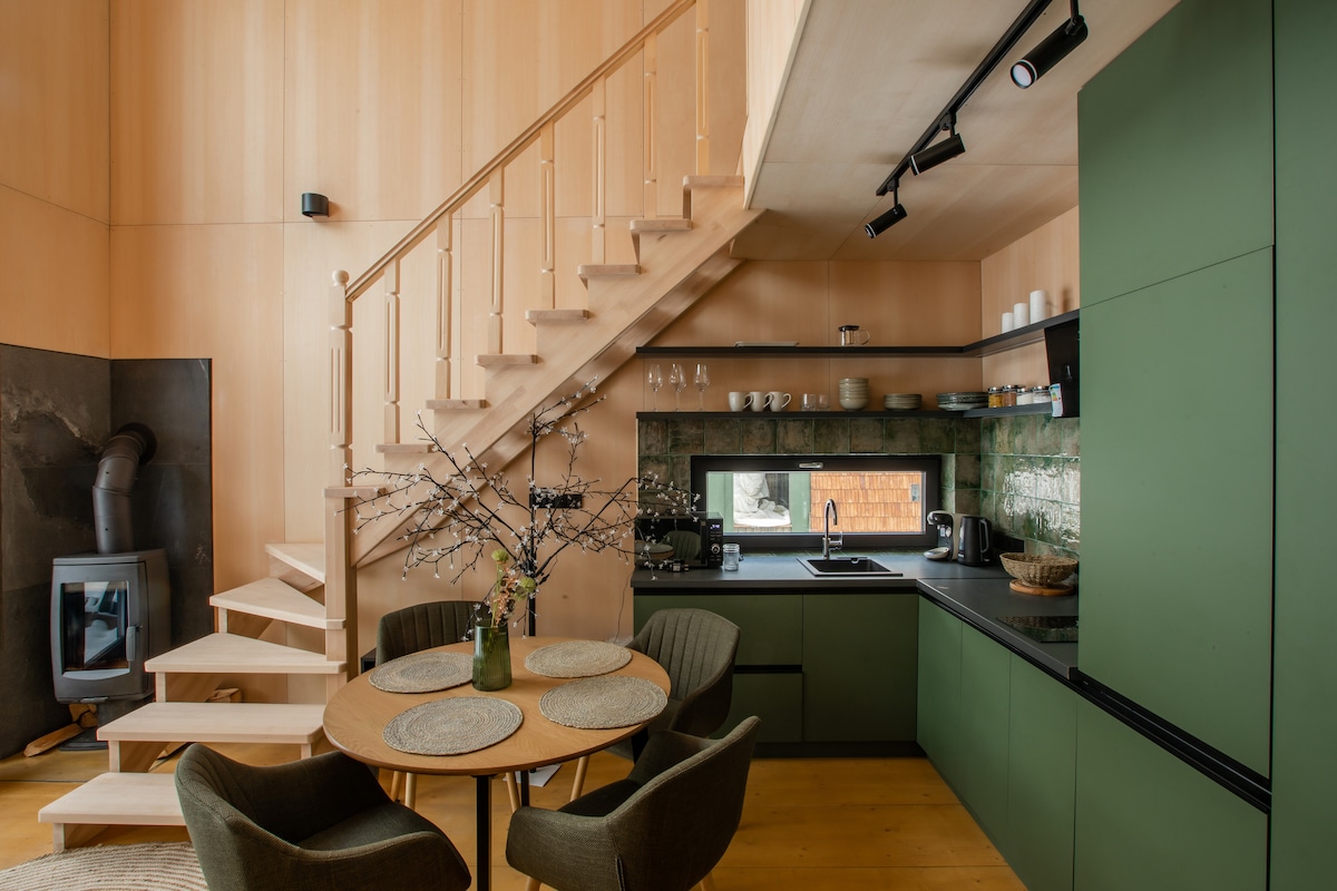Parte independiente de la casa de 54 m² para 4 huéspedes – planta baja con entrada privada (3a) Te invitamos a relajarte en una parte acogedora de la casa con tu propia entrada en el pintoresco pueblo de Polyanytsia, a pocos kilómetros del centro vacacional de Bukovel. La propiedad se encuentra en el área cerrada de la mansión "Freeman Polyanytsia", donde se encuentran cuatro casas de campo. Los 54 m² de alojamiento pueden alojar cómodamente hasta 4 huéspedes, lo que proporciona paz y tranquilidad.
