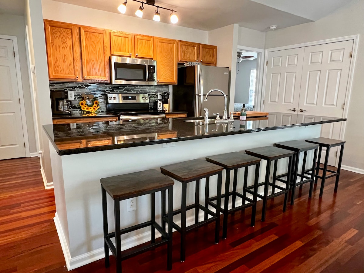 Welcome to your perfect Raleigh getaway! This bright and stylish 2-bedroom, 2-bath condo is right in the heart of the Warehouse District — meaning you can walk to coffee shops, amazing restaurants, bars, museums, and live music venues. Whether you’re here for a weekend adventure, a work trip, or a family getaway, this spot has everything you need to relax and recharge. Enjoy free parking for one vehicle with a provided parking pass, and access to nearby paid parking for additional vehicles!