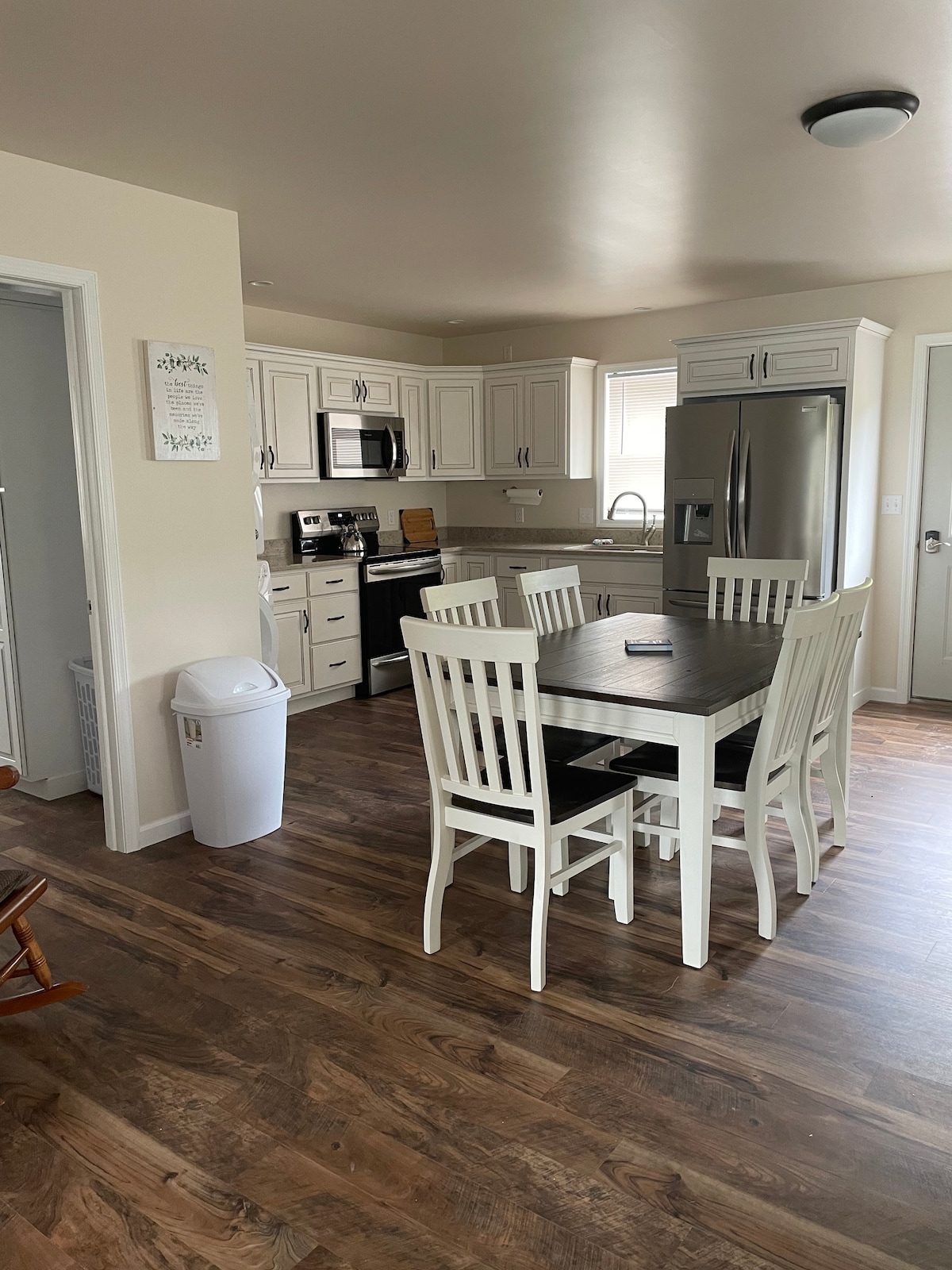 Spacious duplex 2 miles from Beaver Stadium! Quiet neighborhood, great for reunions, families, and access to PSU. Sleeps 10, using shared beds. One driveway parking spot and ample street parking. Large backyard, ideal for cookouts and fun! Fully stocked kitchen and beautiful inside dining area. Full bath. Living room has 2 comfortable couches, both open to queen beds. Master BR contains king. 2nd BR has an XL twin & full-size bunk bed top and bottom. Gorgeous, refinished hardwood floors.