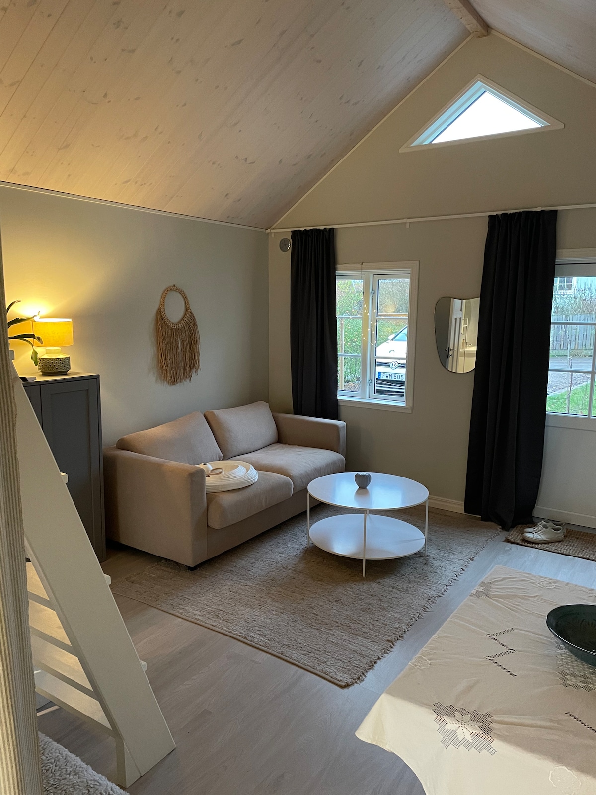 A charming cottage by the sea with a terrace facing the south. The terrace is furnished with a lounge set and bbq. Inside there is a fully equipped kitchen, a bath room with shower and incineration toilet. The living includes access to a small sand beach, a sauna and a pier with a floating dock for relax and bath. On the ground we have our main house and also free-range chickens and a wonderful cat. Feel free to pick your fresh breakfast eggs. Bikes, SUP and some fishing gear available