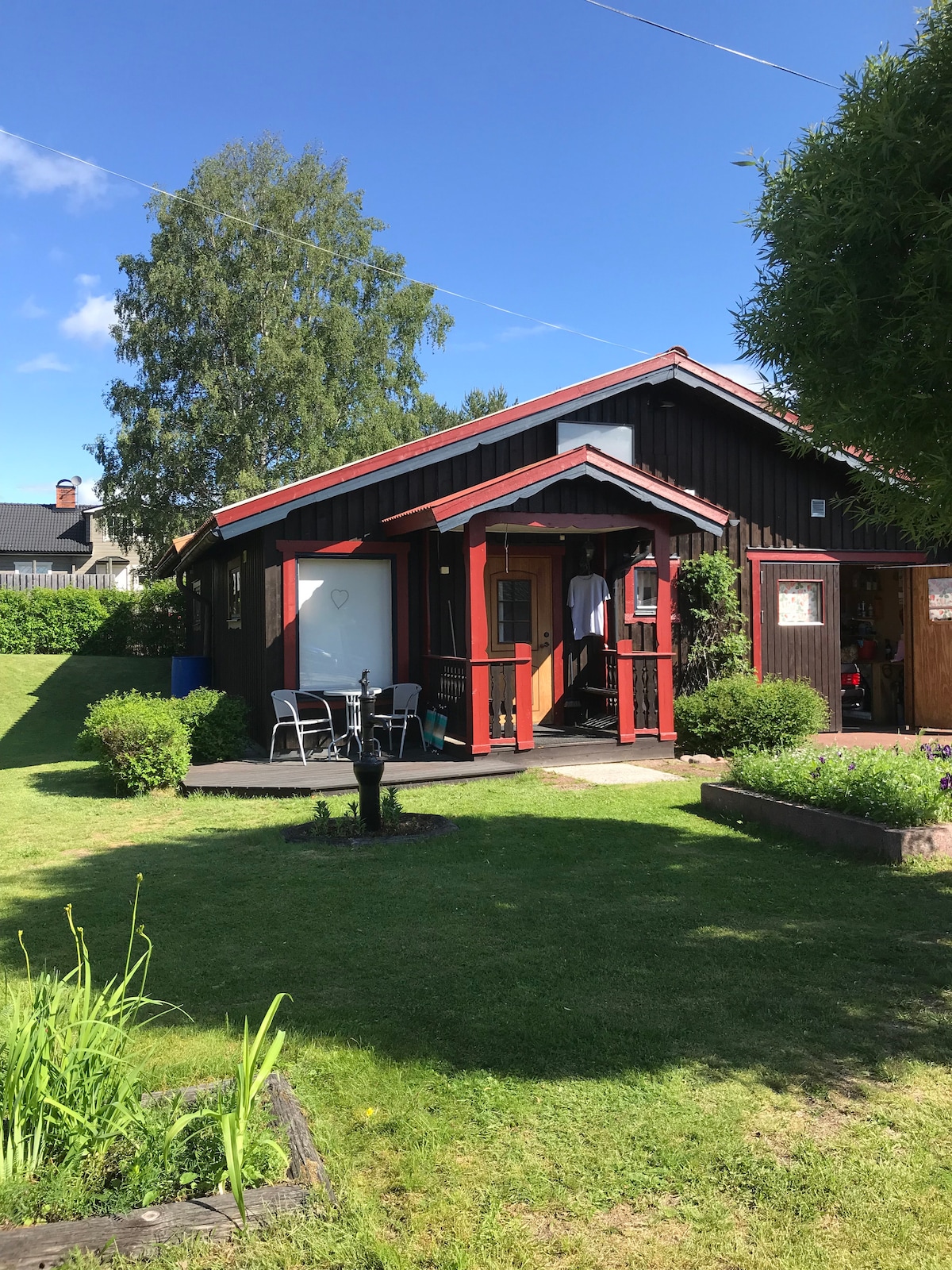 La cabaña está situada en una zona residencial tranquila, a 500 m a pie del centro de Mora, donde se encuentra el Museo Zorn, y cerca del Museo de la Carrera de Vasa y de la meta de la Carrera de Vasa. Está a 1,6 km de Hemus, donde se encuentra el recinto de la Carrera de Vasa, para practicar esquí, correr y montar en bicicleta. Tomteland está a unos 15 km de distancia y merece una visita. El bosque está cerca para dar paseos y disfrutar. Siljan está a poca distancia a pie de la zona de baño Saxviken o de la zona de baño Kepphusviken, en el parque de Mora.