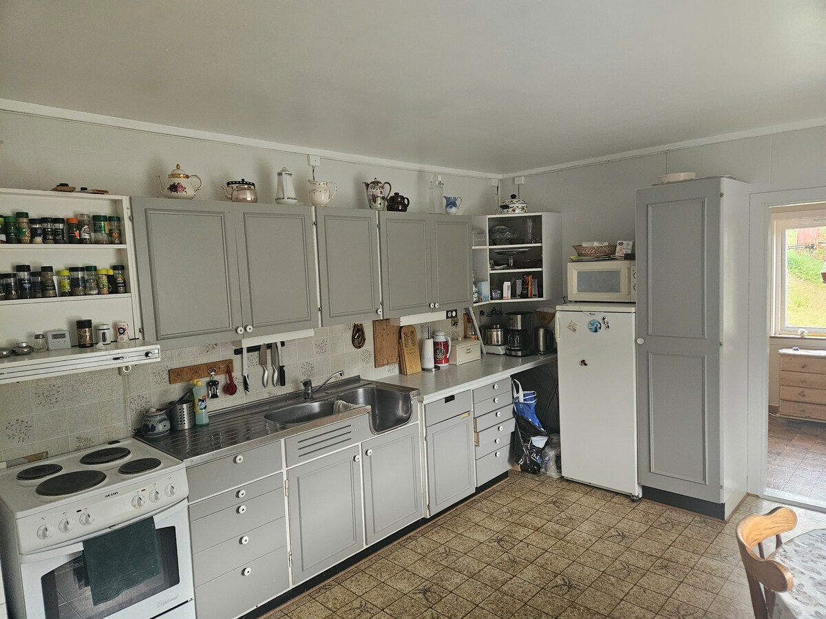 Acogedora mitad de la casa adosada en una tranquila zona residencial a 10 minutos en coche del centro de Mo i Rana. El apartamento tiene un total de 75 metros cuadrados distribuidos en 2 plantas y contiene todo lo necesario para una estancia cómoda en Mo i Rana. En el primer piso encontrarás 2 dormitorios y el baño. El segundo piso consta de una sala de estar y una cocina bien equipada. Televisor de 65 pulgadas con acceso a varios canales de televisión y servicios de streaming. El apartamento cuenta con bomba de calor, cables de calefacción y leña. Gran porche. Parada de autobús a 3 minutos a pie del apartamento.