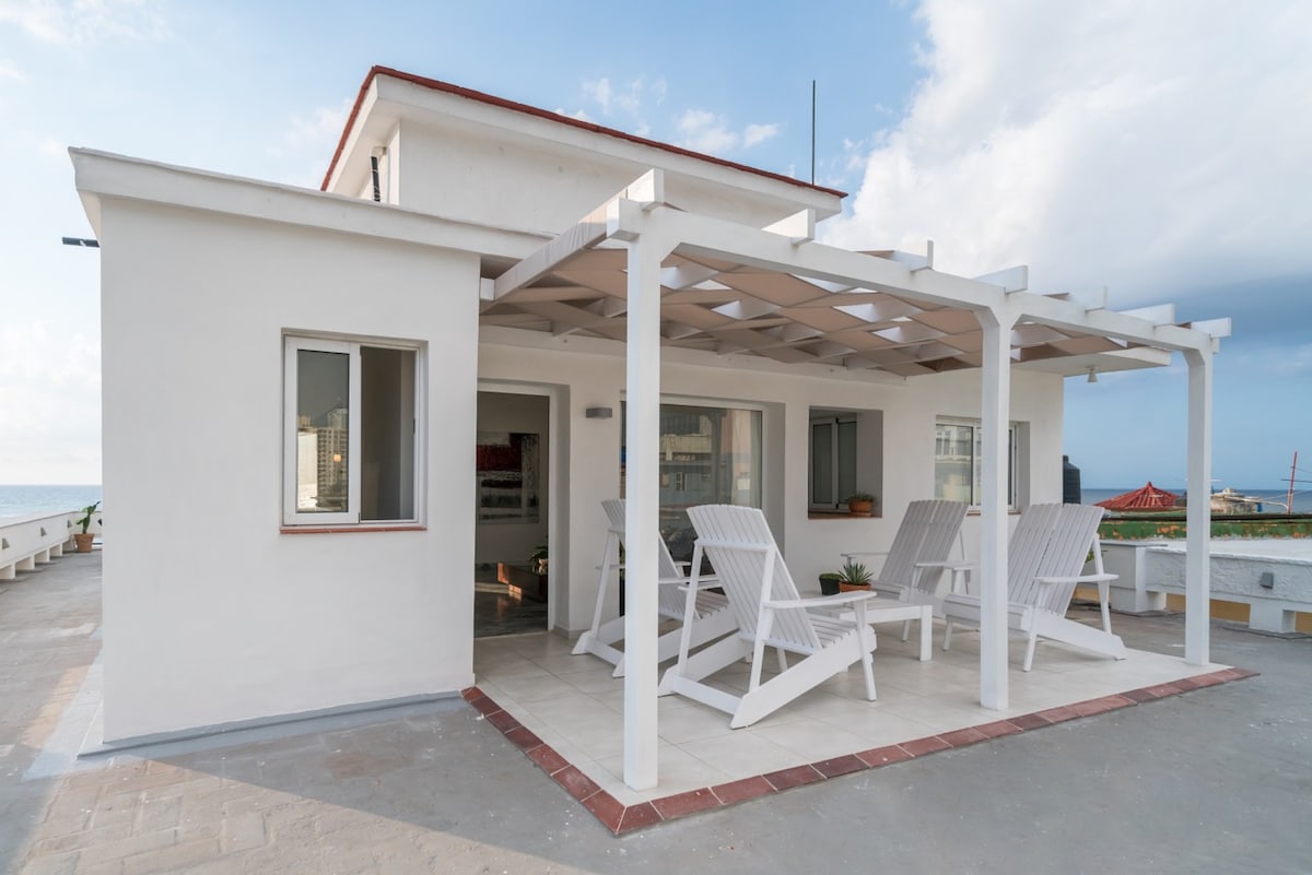 This nice penthouse is located in El Vedado quarter, just steps from ocean, a stroll from restaurants, bars, live-music clubs, theatres, galleries, major hotels, and a 5 minute drive from Old Havana. It offers 2 comfortable guest rooms with AC, WiFi, and private bathroom. There is a security box and a private balcony in one of the bedrooms. A cozy dining-living room leads to an amazing open terrace that makes yours the roof of the building with breath taking ocean and city views. Welcome!