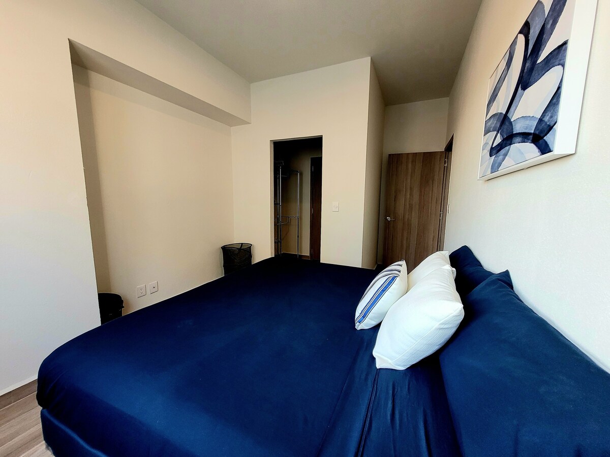 - Acogedor y exclusivo estudio ejecutivo con cama queen-size, escritorio y aire acondicionado. - Balcón para tomar aire fresco. - Cocina equipada. - Ingreso con cerradura inteligente y clave personalizada y exclusiva para cada huésped. - Rooftop panorámico con restaurante en el nivel 9. - Sala de juntas equipada para reuniones profesionales (consultar disponibilidad). - Acceso 24/7 con código personalizado. IMPORTANTE: No contamos con estacionamiento privado dentro de la propiedad.