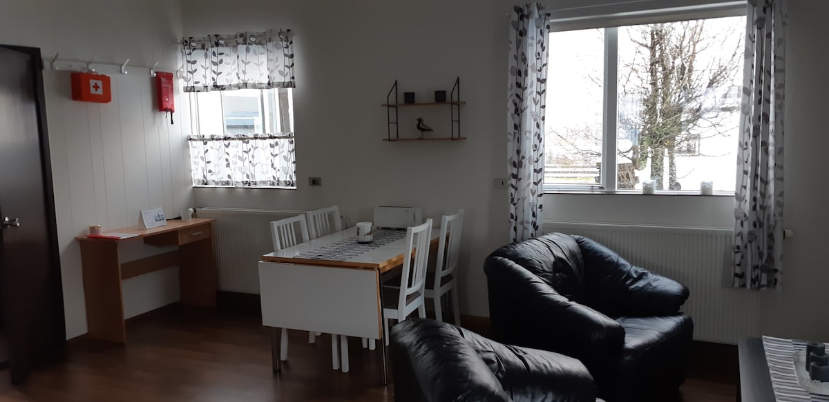 Nueva y confortable casa de huéspedes de 26 m2 en la hermosa Fljótshlíð, cerca de Hvolsvöllur. Estudio abierto con baño privado, dos camas que se pueden unir y un sofá de esquina. Cocina con AirFryer y estufa, comedor y lavadora. Zona tranquila con impresionantes vistas a las montañas, por ejemplo (Eyjafjallajökull) y cerca de un lugar natural. Caja de llaves y estacionamiento gratuito incluidos.
