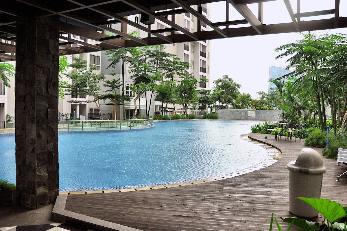 Este espacioso apartamento en Karawaci tiene todo lo que una familia podría desear: vistas increíbles, un ascensor privado y una piscina al aire libre. Con una sala de estar de planta abierta y un gran balcón, no querrás salir de casa. También está a solo 5 minutos a pie de tiendas y restaurantes. Gestionado profesionalmente por Kozystay DISPONIBLE PARA LOS HUÉSPEDES: + Registro digital + Limpieza profesional (desinfección) + Servicios de calidad hotelera y ropa de cama fresca + Wifi de alta velocidad gratuito y TV por cable + Netflix gratuito y Disney Hotstar