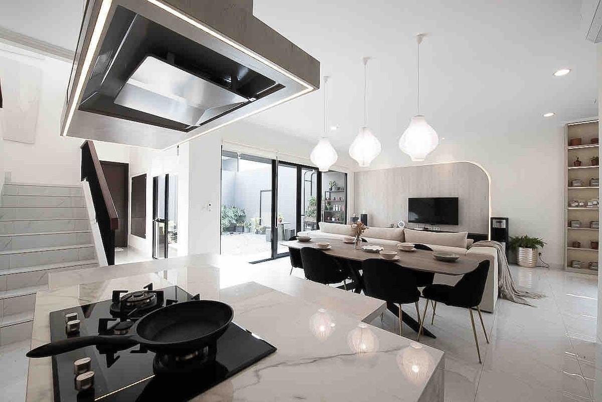 Esta casa de lujo tiene un estilo japonés moderno. La primera vez que entras en Jun's House, se te presentan atuendos Yukata/Kimono que puedes usar libremente y de FORMA GRATUITA❤🤗 durante tu tiempo en la casa. La piscina estética de estilo Santorini hace que la casa sea más hermosa, especialmente por la noche, la mezcla de luces de la piscina hace una belleza sin igual.❤ Karaoke, cine en casa, Minigolf privado frente a la casa, Billar y mini fútbol, también juegos de mesa acompañará tus actividades durante la casa de Jun.🤗❤