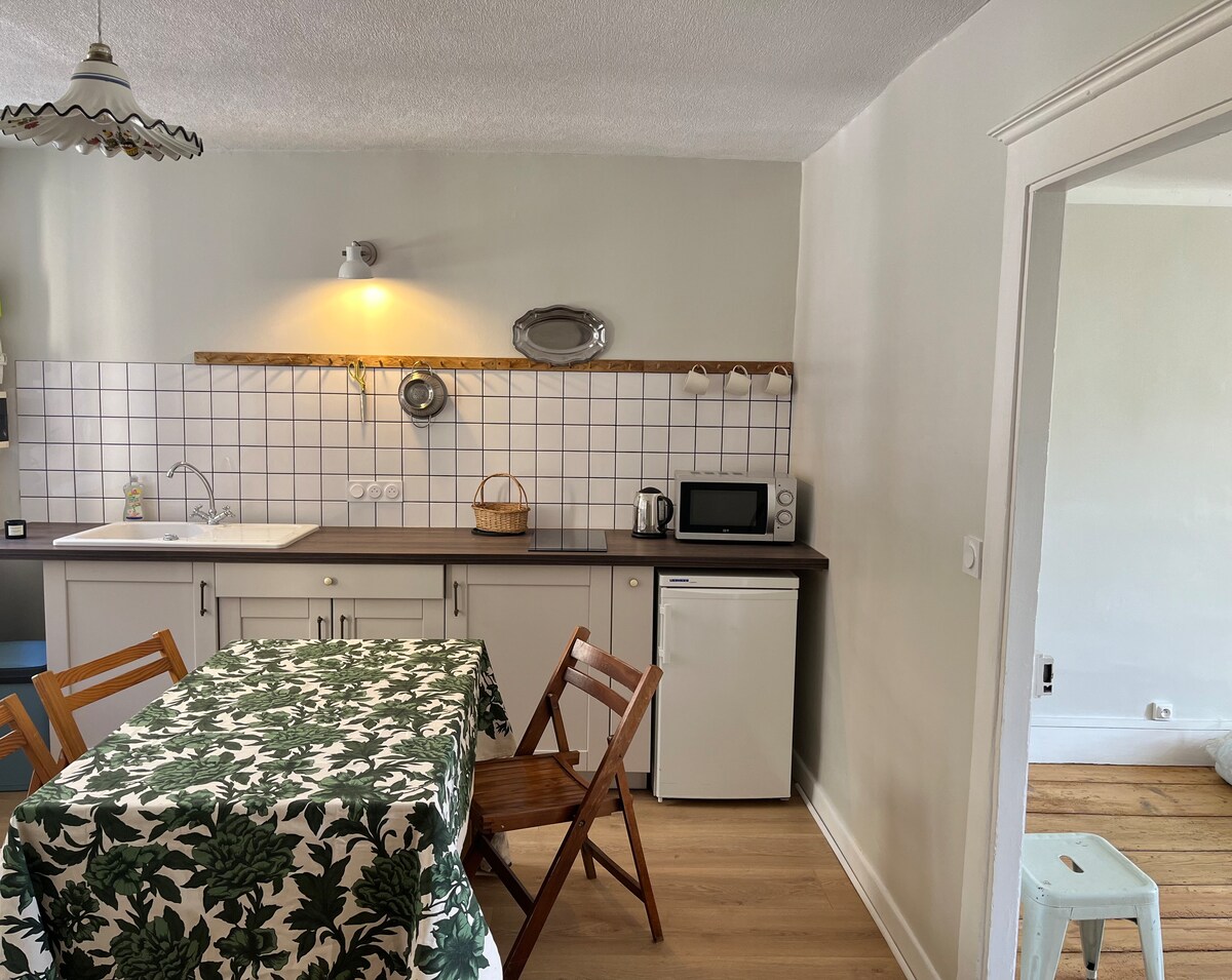 Todo el encanto de este apartamento radica en su sencillez y su ambiente tranquilo. Encontrará dos habitaciones en la planta baja una cocina - sala de estar bien equipada, un dormitorio con una cama grande y cuarto de baño con ducha contiguo. Podrá disponer de la terraza y el jardín. Ideal para visitar la Real Salina de Arc-et-Senans (Patrimonio de la Humanidad de la Unesco).
