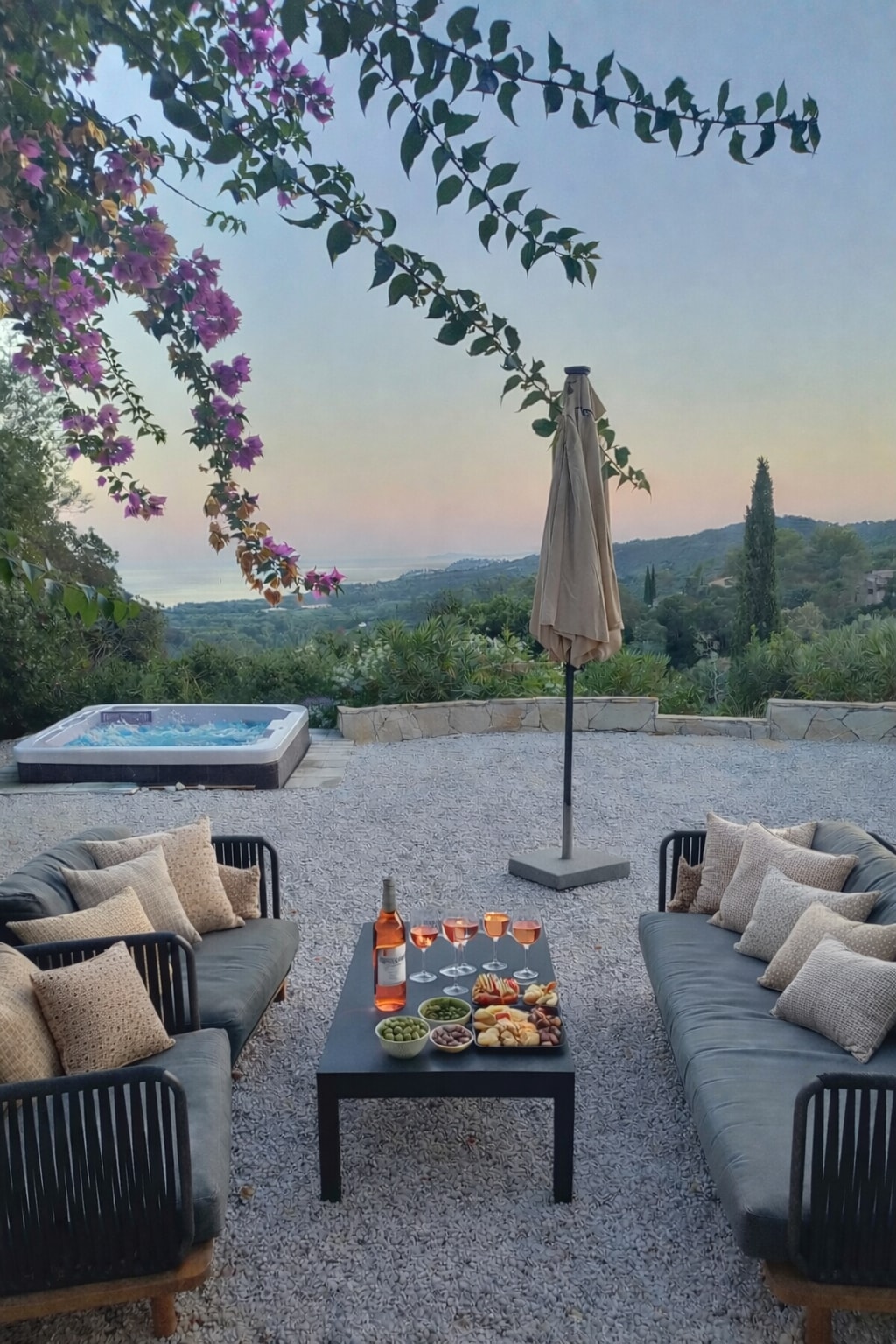 You will be our only guests in our heaven of peace! You have the option of renting either our luxurious 33 m2 (353 sq2) studio, equipped for two people, or this same studio plus an extra room, for four people maximum (60 m2- 642 sq2 total) You would benefit from a 86 m2 (920 sq2) private terrace with a 180° panoramic breath-taking view on the Mediterranean and the Îles d’Or, as well as an amazing pool reserved only for our guests, overlooking the villa, with an equally incredible view!