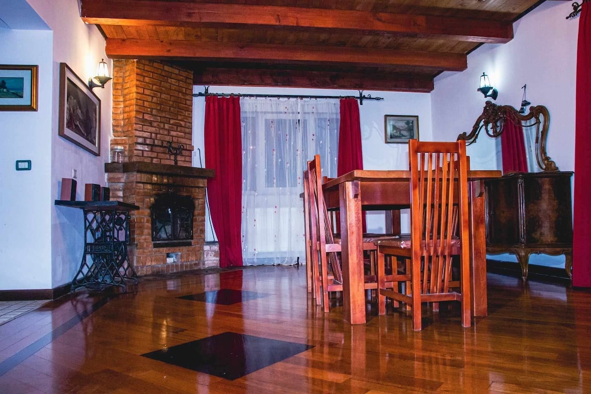 ¡Te esperamos en Casa Adriana! Ubicado en Ileni, Str. Main n.º 348 A, Com. Pride, Jud. Bv. Tenemos 9 lugares para hospedarte. - Dos dormitorios dobles, habitaciones muy amplias, ¡30 m² por habitación! - Un dormitorio principal - 2 baños. - Una amplia sala de estar con chimenea de leña - Una cocina grande totalmente equipada. - 3 terrazas - Una glorieta - barbacoa - estacionamiento. - Wifi. Lugares emblemáticos: - Fortaleza de Fagaras - Aventura Park - Pista de esquí (Dragus) - Monasterio de Sambata de Sus