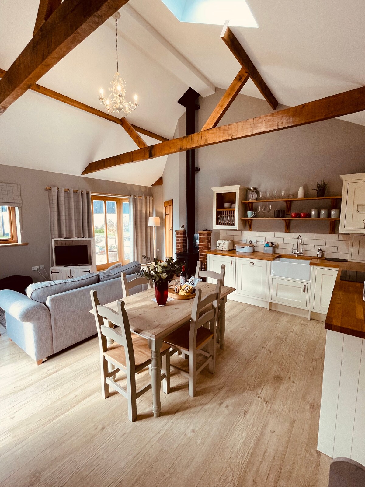 Hermosa y acogedora conversión de granero * 1 dormitorio con cama tamaño king. * Bañera independiente con tapa enrollable dentro del dormitorio * Aseo y ducha en suite. * Zona de estar de planta abierta (incluye cocina, comedor y salón) * Estufa de leña de doble cara (entre el dormitorio y la sala de estar) * Zona de patio cerrada dentro del patio compartido * Capacidad para 2 personas * Estacionamiento gratis * Zona de paseo de perros