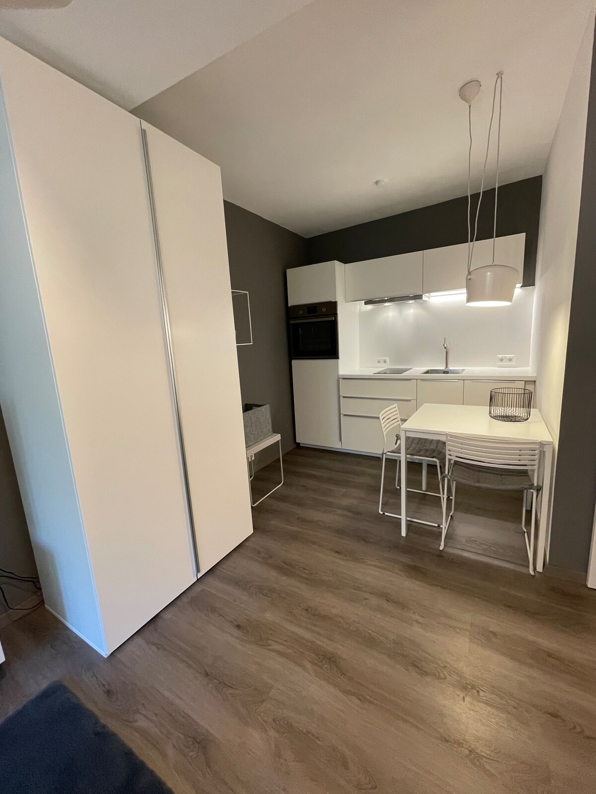 Superficie habitable total de 25 metros cuadrados Ubicación céntrica La sala de estar incluye una cocina americana con campana extractora, una mesa de comedor, un escritorio junto a la ventana y una cama de 1,20 m de ancho (2 m de largo). El baño está equipado con una ducha a ras de suelo (sin lavadora integrada). El aparcamiento en Dachauplatz está muy cerca. Hay más plazas de aparcamiento a lo largo de las calles (de pago). Hay wifi disponible.