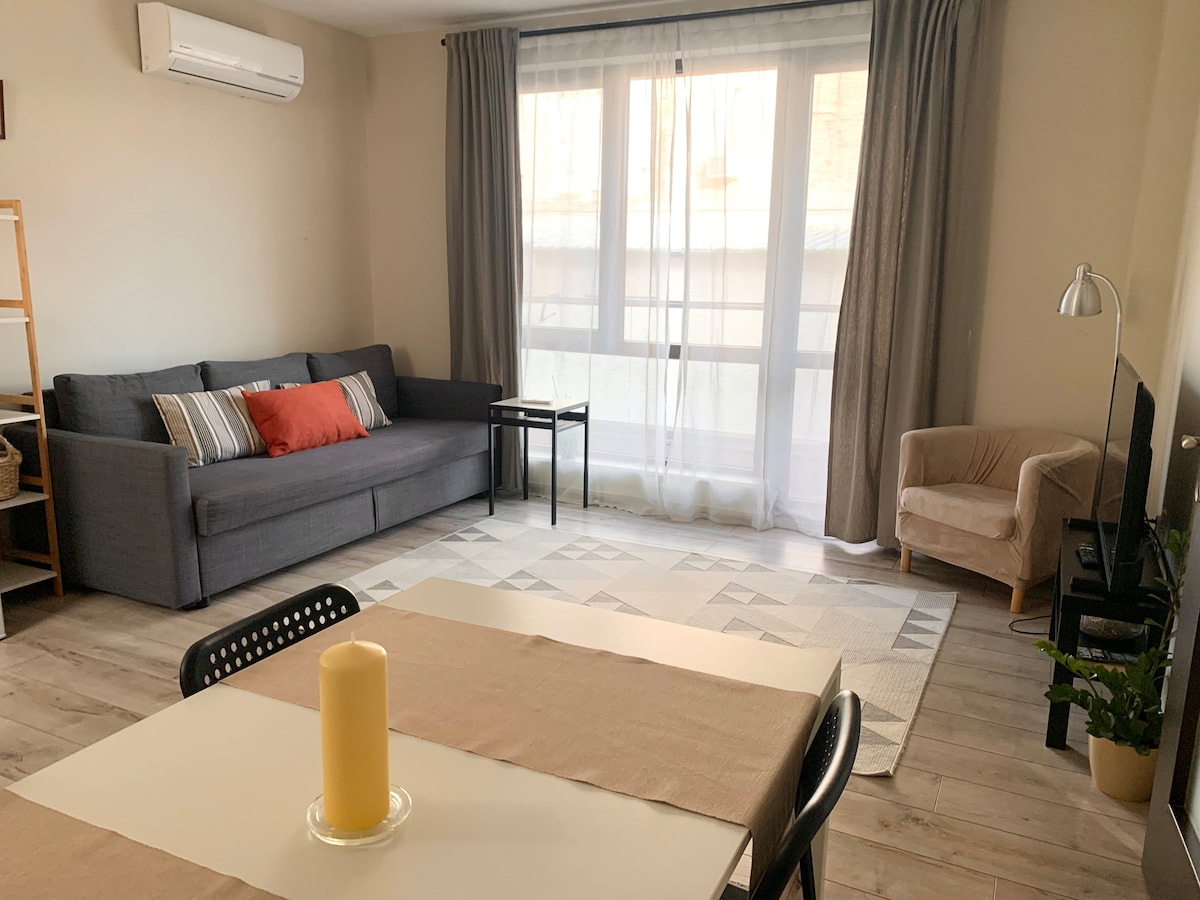 Bienvenido a mi nuevo y acogedor lugar, diseñado con mucho amor,cuidado y pensamiento para que puedas tener una estancia verdaderamente relajante en Plovdiv. El edificio está justo en frente de la Feria Internacional de Exposiciones, a poca distancia a pie del centro de la ciudad a través del hermoso río Maritza. El barrio es muy animado, comunicativo y seguro. Estaré encantado de conocerte y alojarte personalmente, por lo que inmediatamente te sentirás como un viejo amigo que vino de visita :)