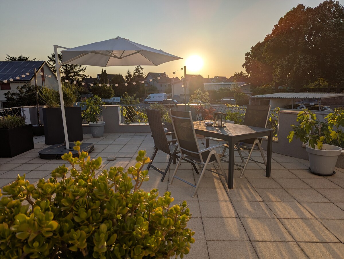 ¡Bienvenido a Hockenheim! Nuestro apartamento dúplex céntrico está en una tranquila casa familiar de 2 personas y puede alojar hasta 5 personas. Hay numerosas plazas de estacionamiento disponibles de forma gratuita frente a la casa. La estación de tren, las tiendas, la farmacia y Hockenheimring están a poca distancia a pie. Situado en el corazón de la región metropolitana del Rin Neckar, se puede llegar a varios destinos principales como SAP Headquarters, Mannheim o Heidelberg en pocos minutos en coche (o tren).