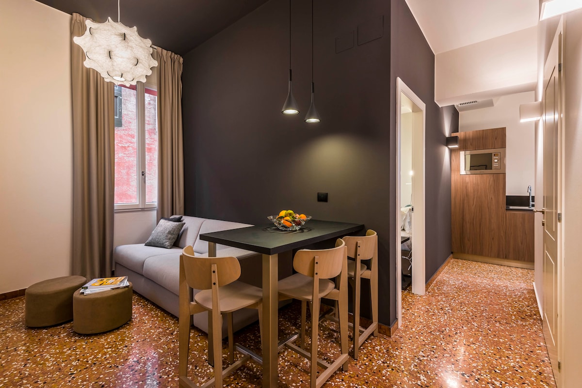 Apartamento con carácter en el centro histórico de Bolonia, a pocos pasos de los principales lugares de interés y servicios. Consta de una acogedora sala de estar con cocina americana, perfectamente equipada para cualquier necesidad, con mesa de comedor y un cómodo sofá. El dormitorio, espacioso y equipado con una cómoda cama doble, garantiza un descanso tranquilo. El baño, moderno, está equipado con ducha y todos los servicios necesarios para una estancia cómoda. Un patio interior bonito y tranquilo.