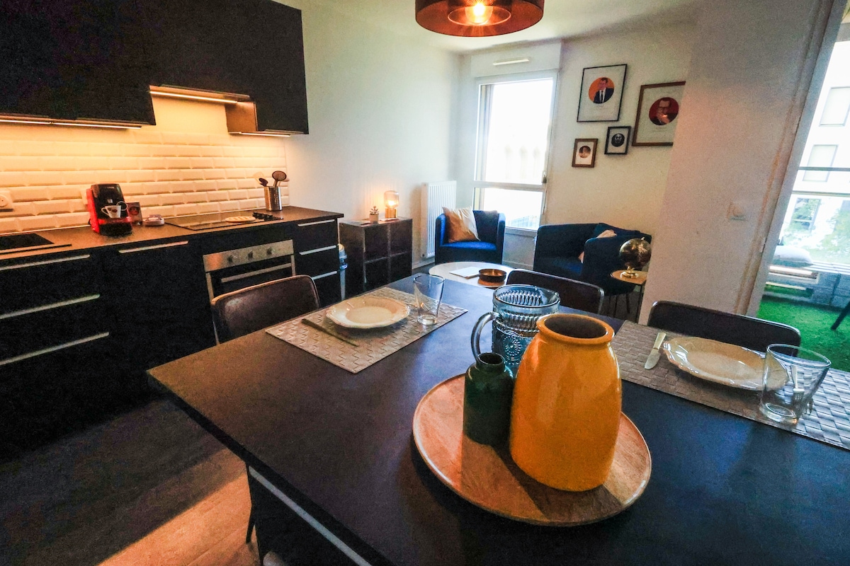 Alójese en L 'Émeraude, un apartamento moderno en Rennes. Este nombre evoca la armonía y la serenidad, reflejadas por los tonos relajantes de su interior. Este cálido alojamiento tiene un gran balcón y una azotea con impresionantes vistas de la ciudad. Disfrute también de una sala de fitness.