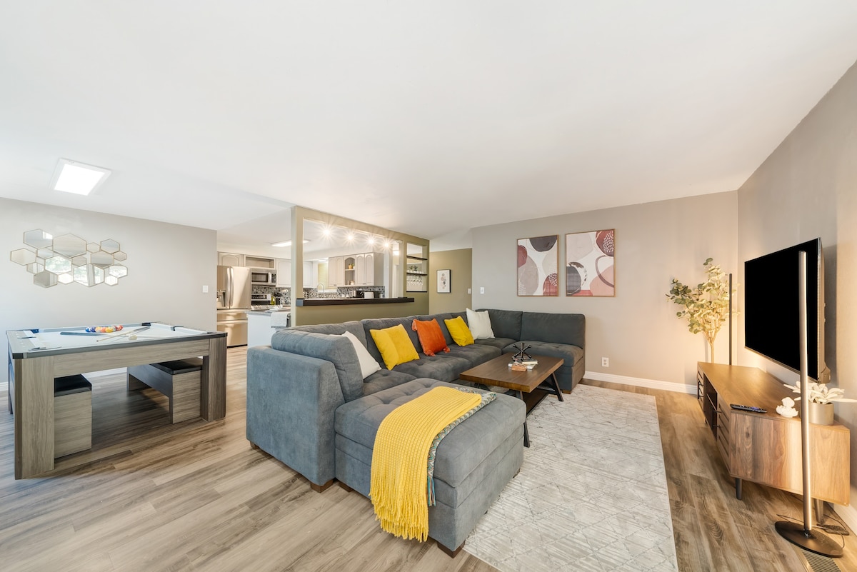 ¡Bienvenido a nuestro acogedor y moderno hogar! Experimenta la combinación perfecta de comodidad y entretenimiento con nuestra acogedora mesa de billar/ping pong y nuestro relajante jacuzzi. Ideal para familias, nuestro alojamiento está convenientemente ubicado cerca del aeropuerto, el centro de convenciones, los casinos y el emocionante parque de patinaje Mira Loma. Además, estarás a solo 12 minutos en coche del vibrante campus de la UNR. ¡Descubre lo mejor de Reno durante tu estancia en nuestro refugio familiar! ¡Aire acondicionado y calefacción central!