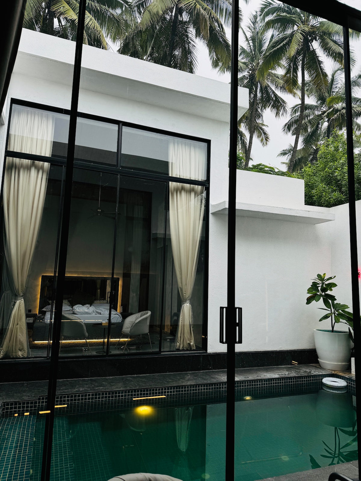 Villa privada y acogedora con piscina, lugar de 2 dormitorios con capacidad para 15 personas, muy espaciosa y masiva. Cocina disponible y accesible con todos los equipos sin cargo separado. Lugar de fiesta con bar, luces y altavoces en el pasillo con aire acondicionado.