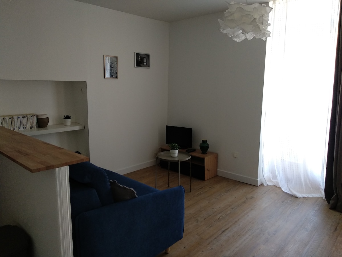 Encantador T1 bis en el centro. Ubicación ideal, restaurantes, teatro, cines, comercios, museos, todo está al pie del apartamento. El apartamento está situado en el 3er piso de un hermoso edificio del siglo XIX. La escalera de granito es ancha. La calle Jean Jacques es una calle peatonal muy animada, pero la ventaja de nuestro apartamento, es que da a un patio privado muy tranquilo asegurado por 2 puertas cerradas . Se proporcionan bastidores para bicicletas (dentro del límite de 2), por lo que estarán seguros.
