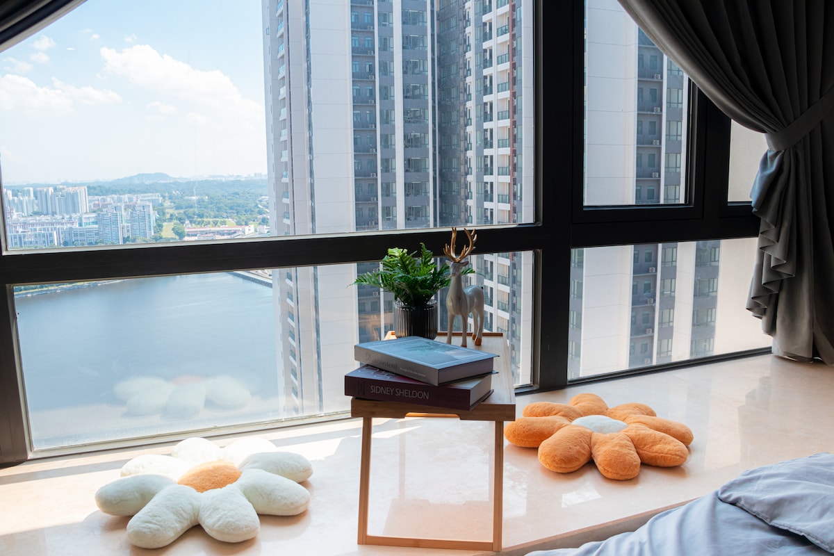1 dormitorio + baño + sala de estar y cocina 1 SÁBANA DE CAMA KING + Aparcamiento no incluido. (El máximo puede alojar a 4 personas, hay 2 colchones delgados adicionales) Debido al problema de seguridad, NO se nos permite cocinar, pero hemos preparado una mini olla eléctrica y un microondas para que los huéspedes cocinen, por ejemplo, fideos instantáneos, sopa, ensalada, etc. Elegante suite de 1 dormitorio más cercana al punto de control SG-MY a 7 minutos. Perfecto para parejas, viajeros solitarios, familias para viajes, estancias de trabajo o aventuras en la ciudad.