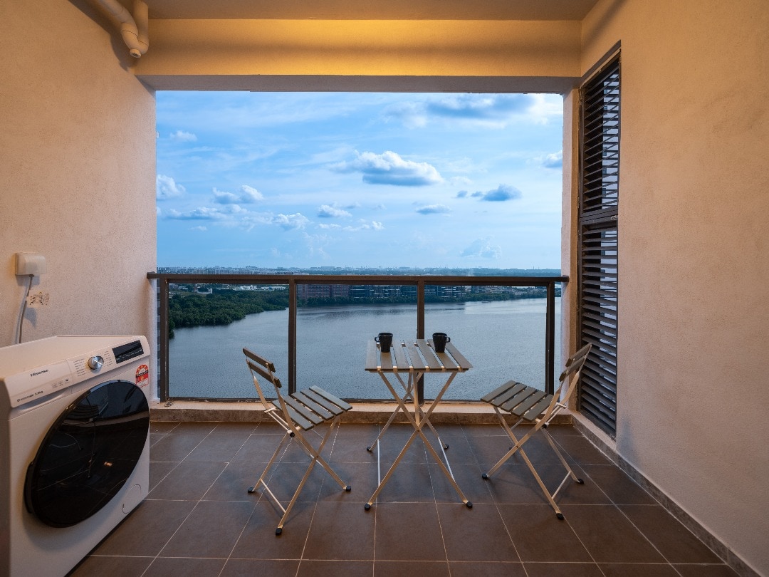TwinGalaxy@JB HighFloor Balcony CityView2 habitaciones 2 baños 1 sala de estar, balcón en un rascacielos