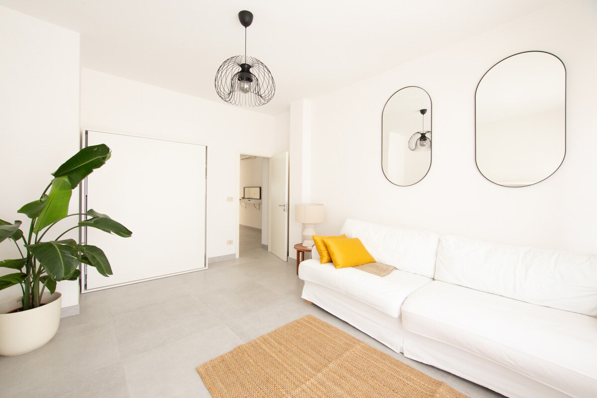 Estudio moderno completamente renovado con cocina americana, baño grande y zona de lavandería separada. Amplio patio común con cobertizo para bicicletas y motos, mesa y sillas de jardín y sombrilla. Equipado con televisión inteligente, aire acondicionado y wifi. A 5 minutos a pie del mar, situado en una zona residencial, con amplia disponibilidad de aparcamiento gratuito en la calle. En las inmediaciones hay paradas de autobús y Metromare (50 m), restaurantes/pizzerías, bares, panadería, supermercado y banco. Ideal para parejas o amigos.