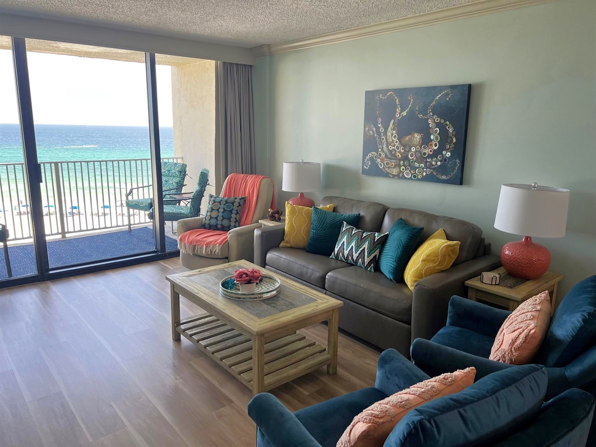 Nos esforzamos para que te sientas como en casa. Tendrás todo lo que necesitas en este bien surtido condominio de dos dormitorios, dos baños y frente a la playa. Las vistas son indescriptiblemente hermosas. ¡Observa una puesta de sol fascinante desde la sala de estar o despierta con una hermosa vista a la playa desde el dormitorio principal! Incluso la habitación de invitados tiene vistas de las que hablar.