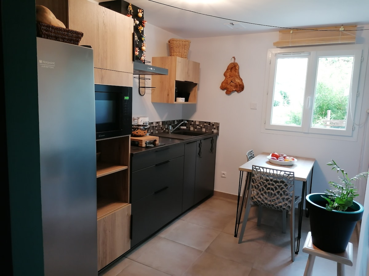 De paso para una estadía de 2 noches o más, de vacaciones, el fin de semana, sean bienvenidos. Nuestra pequeña casa Le B'S de 45 m² totalmente nueva, con capacidad para 2 personas con posibilidad de alojar hasta 4 personas como máximo con sofá cama. Su ubicación ideal al pie del Mont Ventoux, al inicio de las caminatas, numerosos paseos en moto . Se beneficia de un jacuzzi privado al aire libre y su propio espacio para estacionar. Se proporcionan sábanas y toallas.