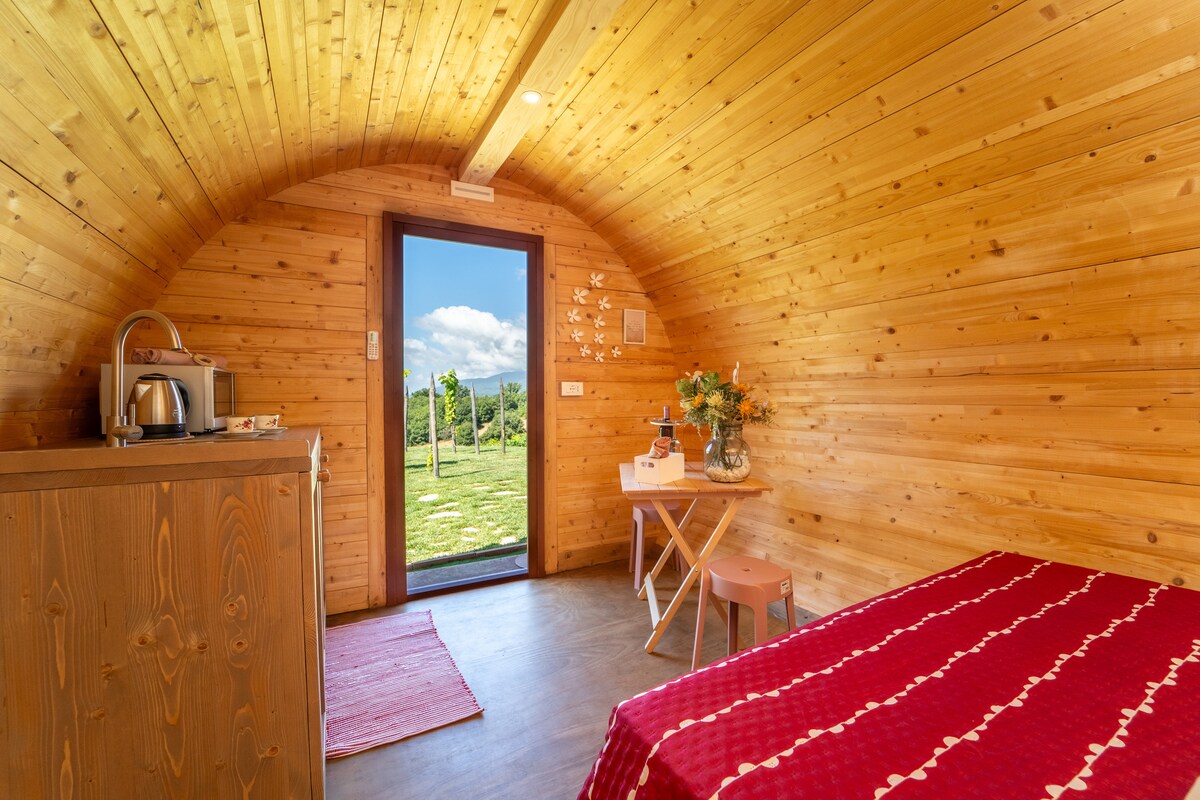 Ubicados entre los viñedos de la bodega Antiche Vigne Pironti, los barriles están equipados con todas las comodidades necesarias para una estancia relajante e inolvidable. Durante tu romántico fin de semana en el viñedo, puedes degustar vinos artesanales italianos y tablas de cortar en medio de las filas disfrutando de un fin de semana exclusivo de comida y vino lleno de experiencias sensoriales.