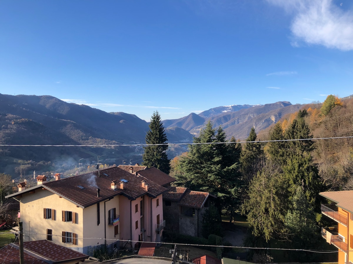 Bienvenido a nuestro oasis de tranquilidad enclavado en la naturaleza, con impresionantes vistas de las montañas circundantes. ¡Ubicado a pocos minutos del centro de la ciudad, a 10 minutos de San Pellegrino Terme y a pocos kilómetros de Bérgamo y del aeropuerto, nuestro apartamento ofrece el equilibrio perfecto entre serenidad y comodidad! Amamos a los animales tanto como tú, así que no dudes en traer a tu amigo de cuatro patas. ¡Prepárate para experimentar un momento único de relajación y serenidad!