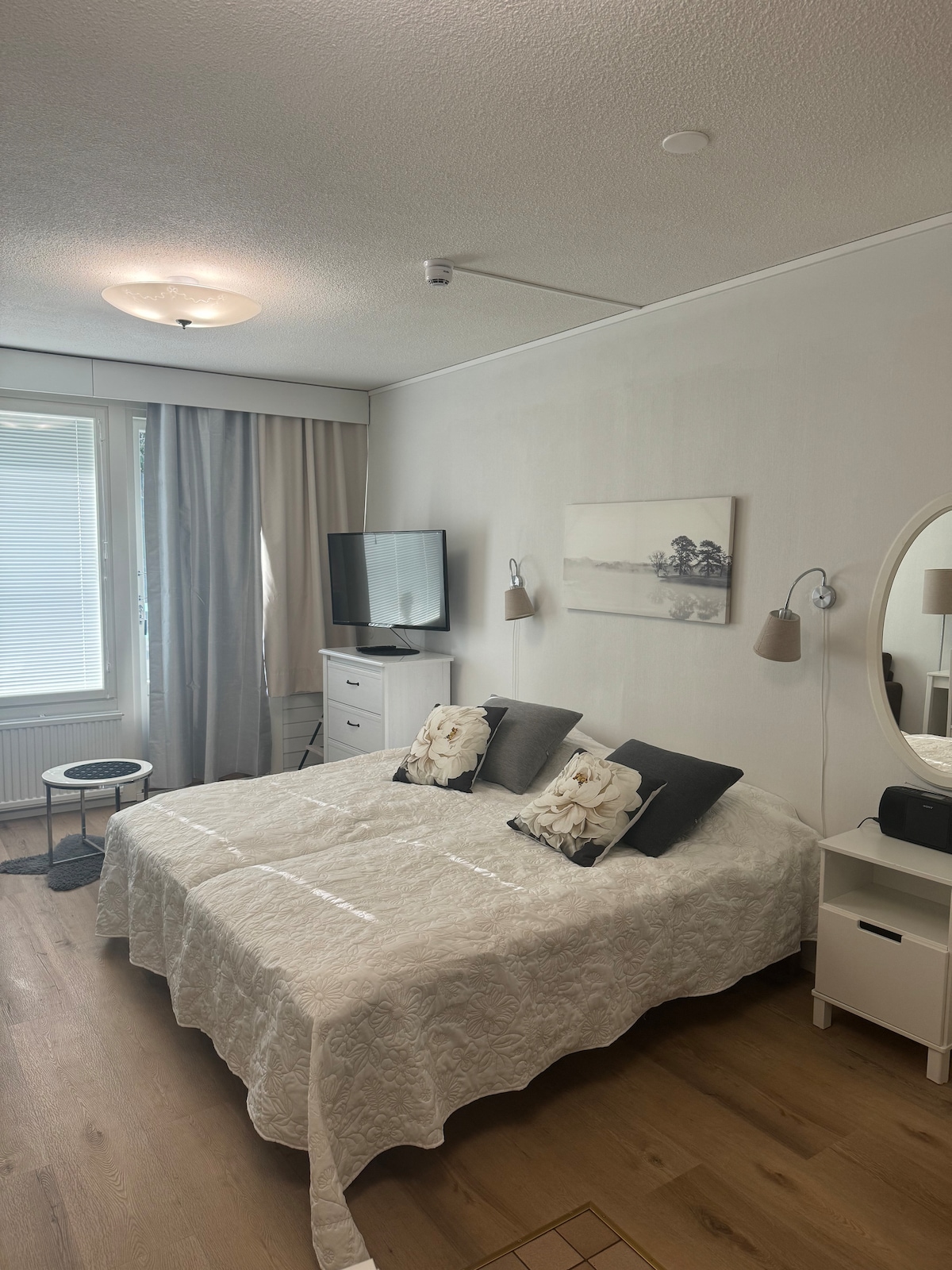 Le damos la bienvenida a un espacioso y hermoso apartamento de dos habitaciones (59 m²) en el centro de Tampere. ❣️ Todo lo que necesitas está a poca distancia. La estación de tren está a solo 450 m, y el Nokia Arena también está justo al lado. El apartamento de la 2ª planta tiene un dormitorio con una cama americana para dos personas. Como camas adicionales, un sofá cama y un canapé + un par de colchones extra. • Cocina abierta moderna y totalmente equipada con isla. • Balcón acristalado • TV de 55 pulgadas • Wifi gratuito • Check-in independiente Hay aparcamiento gratuito cerca.