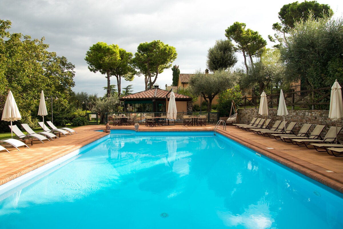Las casas de campo de la posada, ideal para estancias inmersas en la tranquilidad del campo, tienen una entrada independiente, estacionamiento independiente, dormitorio doble, bonita sala de estar y encantador loft con 3 camas adicionales y cocina. Además, la hermosa terraza abre las puertas a una maravillosa vista entre olivos centenarios y bosques de nueces que rodean toda nuestra finca. El precio incluye desayuno buffet, entrada a la piscina y canchas de tenis/fútbol.