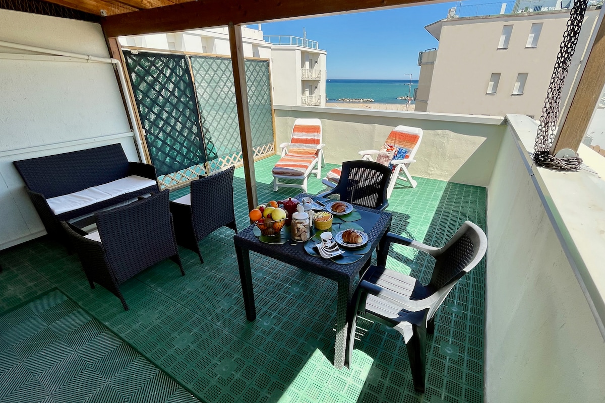 El apartamento Smart está en una posición céntrica en la calle paralela al paseo marítimo, a solo 30 metros de la playa. Ideal para familias con niños mayores. No recomendado para niños pequeños o mayores o para aquellos que tienen dificultades para subir las escaleras. Vale, incluso para chicos tranquilos, sin fiestas. A su alrededor hay pubs, restaurantes, pizzerías y supermercados abiertos hasta altas horas de la noche.