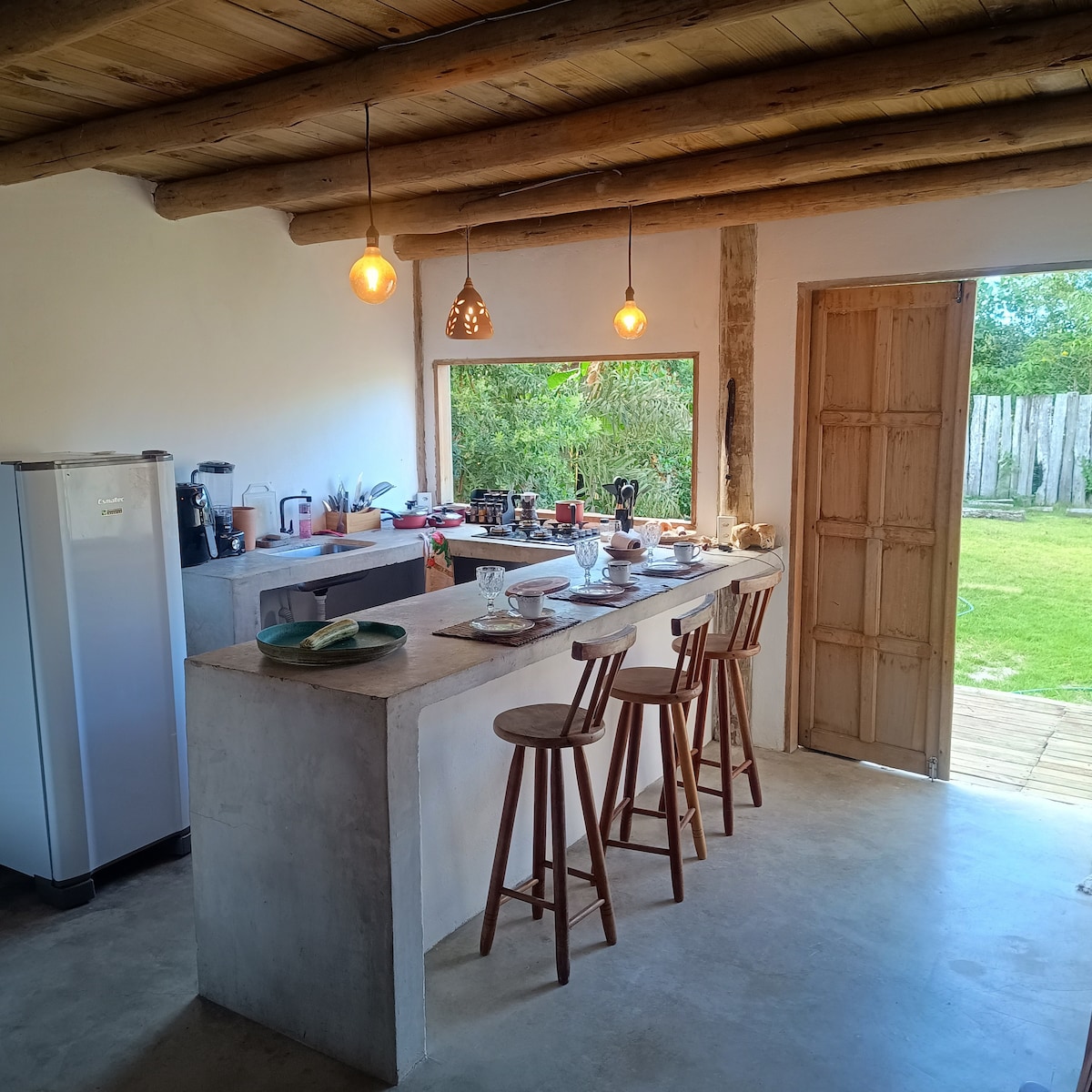 Bangalôs recém construidos para até 4 pessoas com cama queen size, bicama, roupa de cama e banho, cozinha completa e utensílios, ar condicionado, ventilador de teto, Wi-Fi e SmartTV 32". Inspiradas nas moradas de pescadores, nossos bangalôs tem o charme e a simplicidade unidos ao conforto e uma experiência única, onde você viverá momentos inesquecíveis. Localizada na falésia de Corumbau á 300m da praia, estamos perto também, do centrinho com restaurantes e mercados.