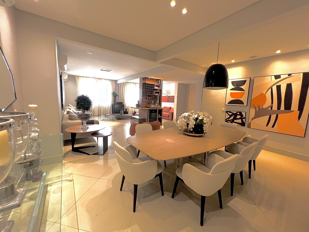 ELEGANTE y enorme apartamento de 160 metros cuadrados en Ipanema, a una cuadra del restaurante Fasano y Gero, el hotel de 5 estrellas en Río, que recibe POPStars. A media cuadra de la playa. Bar y restaurantes alrededor. Este departamento está ricamente decorado con muebles de diseño. Frette y Trussardi, toallas italianas. Es totalmente cómodo y está listo para recibir a familiares y amigos para una estadía muy placentera y segura. Como cinco estrellas y estilo boutique,excelente relación calidad-precio. Bien para familias y amigos. Es un RÍO nuevo, limpio, higiénico y encantador.