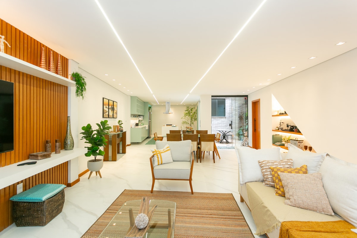 Luxury apartment one block from the beach, 3 min walk, best spot in Copacabana, quiet street, 24h security, 4 bedrooms (1 suite with 50” smart TV/1 office), 2 Queen beds + 2 double beds, 2 bathrooms, 108m² fully renovated, all rooms with split air conditioning, full American kitchen, fridge, cooktop, oven, microwave, air fryer, 2 smart LCD TVs 65” and 50”, 5G wifi, washing machine. Located in the heart of Copacabana close to restaurants and shops. Self check-in and check-out anytime.