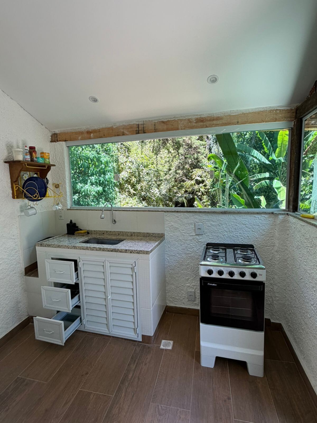 Estamos ubicados en el Parque Nacional Serra dos Orgãos, con rutas de senderismo junto a la naturaleza, cascadas y una exuberante vista de las montañas más hermosas de Río, donde tenemos restaurantes cercanos y sitios vecinos con una experiencia rural, ya que es una región rural con plantaciones de vegetales, no estás aislado. Chalet con dormitorio doble, cocina americana, nevera, estufa, mesa, utensilios domésticos y ducha exterior.