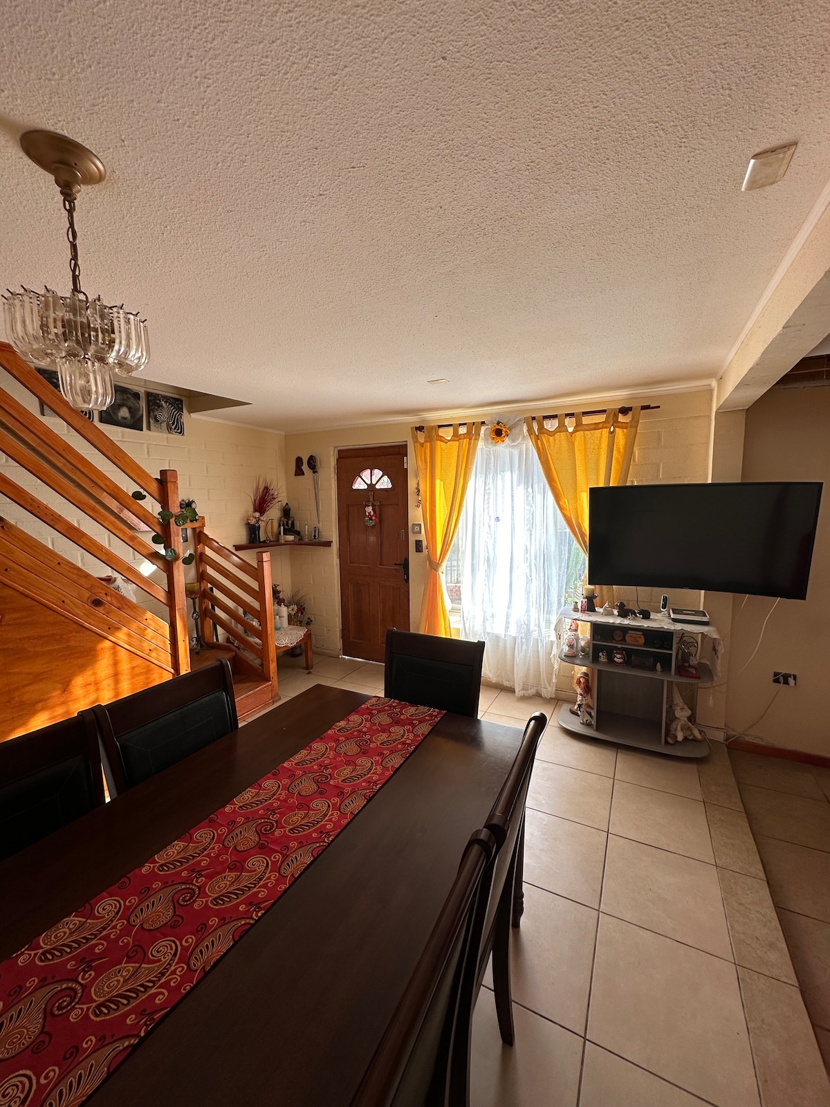 Amplia y acogedora casa con 3 habitaciones, 2.5 baños y sala de estar con sillon cama. Amplio y hermoso patio, con parrilla (pequeña) y comoda zona de terraza. Ubicada en tranquila y familiar zona de la ciudad, con accesos a supermercado (3 cuadras) y a la salida sur de la ciudad. Hay espacio para 2 estacionamientos pero solo 1 estacionamiento esta incluido.