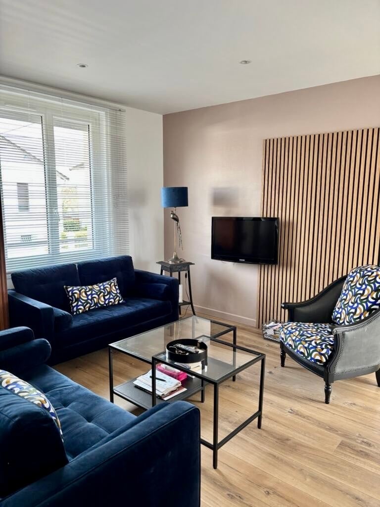 Bienvenido a su nido tropical en el corazón de Roanne 🌴 Este apartamento de 47 m², completamente renovado, combina comodidad, tranquilidad y exotismo. Idealmente situado a 7 minutos de la estación de tren y a 10 minutos del centro de la ciudad, está a dos pasos de la Place Victor Hugo con sus cafés, restaurantes y tiendas ✔️Estacionamiento gratuito frente al edificio ✔️Cocina equipada. ✔️Sala de estar con sofá cama (160x200 cm) ✔️Dormitorio con cama tamaño Queen (160x200 cm) ✔️Baño moderno e inodoro separados ¡Reserva ahora!
