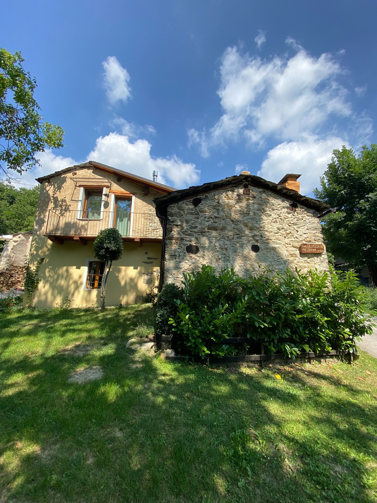 Casa en el centro histórico del pequeño pueblo de Monterosso Grana, directamente en el arroyo, con vistas al castillo y a las montañas del valle Grana, dispone de una habitación doble, con entrada independiente, baño privado, sala de estar con cocina americana, aparcamiento de motos disponible en el patio, podrá relajarse, hacer senderismo por los senderos del valle, ciclismo de montaña, pesca, estamos a pocos kilómetros de Cuneo, Saluzzo, de las Langhe y del santuario de Castelmagno