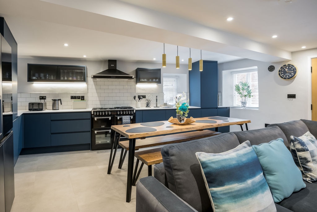 Disfrute de su escapada perfecta en este galardonado ático de 2 dormitorios con vistas al mar de 180 grados en el corazón de la tranquila zona de Alum Chine de Bournemouth, a solo unos minutos a pie de la playa. La propiedad cuenta con dos comedores, uno de los cuales se encuentra en el gran balcón con vistas a la playa de Bournemouth y una estufa de leña a medida para las noches de invierno. La cocina de planta abierta conduce a una acogedora sala de estar donde puedes disfrutar del entretenimiento de Sky Glass TV a través de WiFi súper rápido.