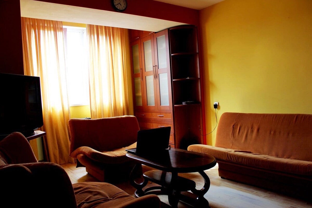 Bienvenido a nuestro tranquilo apartamento para familias en el centro de la ciudad. Nuestro espacio acogedor y totalmente equipado es perfecto para familias. A pocos pasos de nuestro apartamento se encuentra el hermoso parque «Mziuri». Balcón con una gran vista al parque, para que puedas disfrutar del hermoso paisaje mientras bebes tu café por la mañana o disfrutas de una copa de vino por la noche. ¡Damos una cálida bienvenida a tu mejor compañero peludo en nuestro alojamiento! ¡Reserva con nosotros y disfruta de unas vacaciones perfectas!